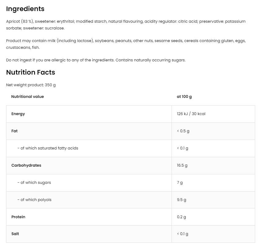 Кайсия 83% притискане на желе | Без добавена захар 350 ml