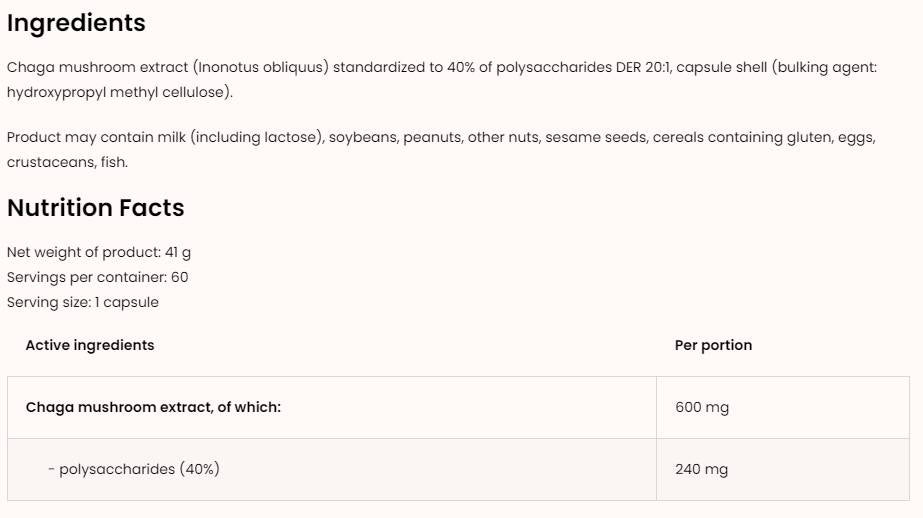Чага, известна още като „черна гъба“, е мощен природен продукт, богат на антиоксиданти, витамини и минерали. Приемът на капсули Chaga 600 mg може да помогне за укрепване на имунната система и осигуряване на енергия и издръжливост, които са особено важни за активните хора. Тази гъба също така предлага редица ползи за сърдечно-съдовата система и поддържа здравето на кожата, благодарение на своите противовъзпалителни свойства.