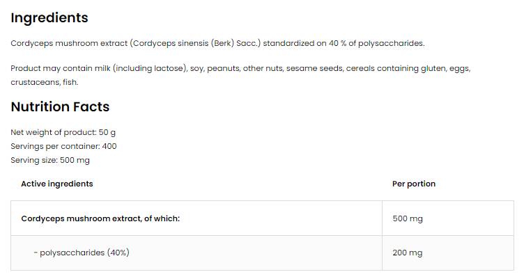 Cordyceps екстракт на прах 50 грама