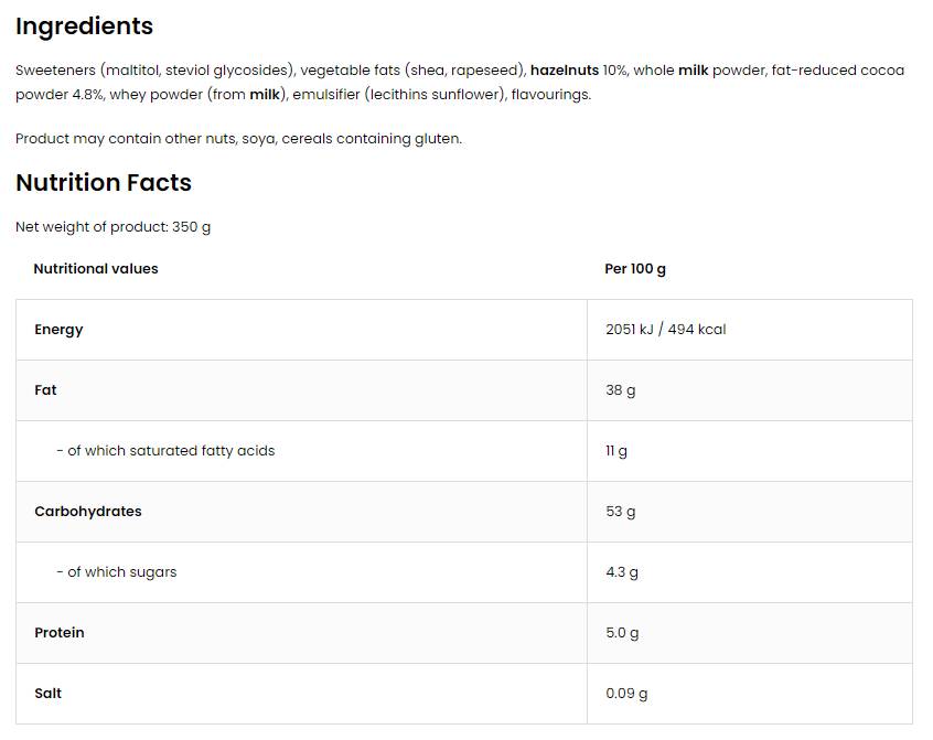 Кремето/Протеинов крем/Шоколад с лешник 350 грама
