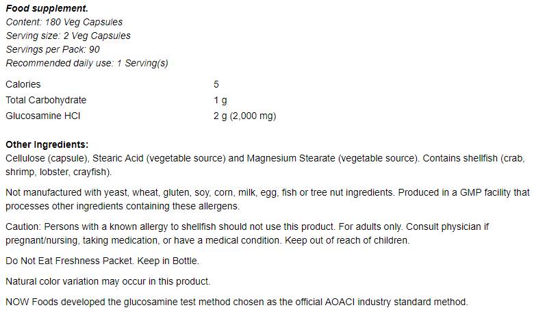Препоръчително е глюкозаминът да се набавя чрез храната (морски дарове) и под формата на хранителна добавка.