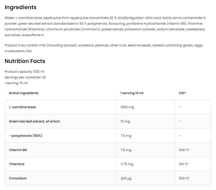 L-Carnitine Liquid е уникален продукт, който съчетава мощните свойства на L-карнитина, зеления чай и хрома, за да ви осигури ефективно решение за отслабване и подобряване на физическата издръжливост. L-карнитинът играе ключова роля в транспорта на мастни киселини до митохондриите, където те се изгарят за енергия. Зеленият чай е известен със своите антиоксидантни свойства, които помагат в борбата със свободните радикали, докато хромът помага за регулиране на нивата на кръвната захар, което е особено важно за контрола на апетита. Научните изследвания подкрепят ползите от L-карнитина, показвайки, че той може да увеличи изгарянето на мазнини и да подобри физическата работоспособност. Зеленият чай е свързан и с повишен метаболизъм и загуба на тегло, а хромът може да намали апетита за храна, особено за сладки вещества. Важно е да се отбележи, че лица с известни медицински състояния или приемащи лекарства трябва да се консултират с лекар, преди да използват продукта. Не се препоръчва за бременни или кърмещи жени. За най-добро пазаруване, Feel You предлага отлични цени и качествени продукти, които отговарят на високи стандарти за безопасност и ефективност. Пазарувайте с увереност и се възползвайте от специални оферти. **Не забравяйте да погледнете втората снимка на продукта за пълния списък със съставките му!**