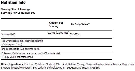 Витамин В -12 Незабавна енергия 2000 MCG - 100 сублинглални таблетки