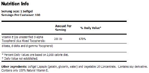 Витамин Е-200 IU D-алфа токофероли-100 гел капсули