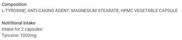 С всяка капсула получавате 1000 мг чист L-тирозин , осигурявайки необходимата доза за оптимална подкрепа на вашето здраве. Формулата е специално разработена, за да се абсорбира лесно и бързо от организма.