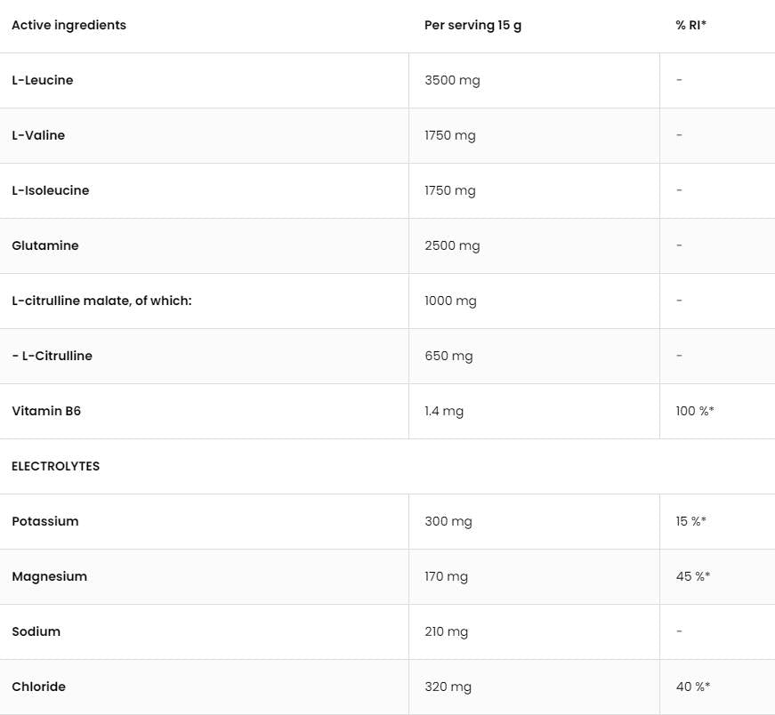 Научни изследвания показват, че BCA (аминокиселини с разклонена верига) играят важна роля в синтеза на мускулни протеини, което е ключово за растежа и регенерацията на мускулите. Освен това, електролитите в продукта спомагат за поддържането на правилния воден баланс в тялото, предотвратявайки дехидратацията и подобрявайки цялостната производителност по време на физическа активност.