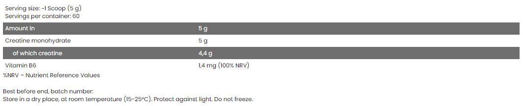 Креатин е един от основните елементи на спортната добавка – използва се от много години от професионалисти и аматьори в различни спортни дисциплини. Освен това, употребата на креатин се препоръчва за хора, които спортуват за удоволствие. Продуктът не съдържа добавена захар, което го прави полезен за отслабване.