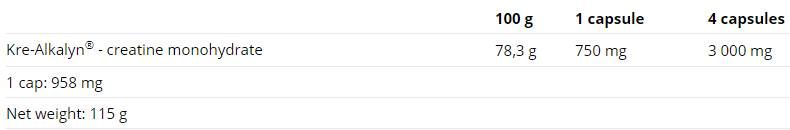 KRE-ALKALYN®1500 е модерна патентована форма на креатин с отлична стабилност и усвояемост от организма. 1500 мг. креатин на доза. Подходящ за спортисти, които се стремят да увеличат мускулен обем и сила.
