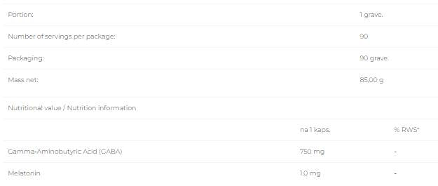 • Съдържа 750 mg GABA и 1 mg мелатонин на порция