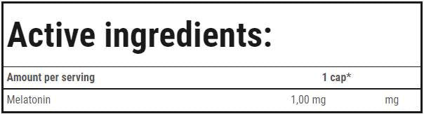 СЪСТАВ: малтодекстрин; обвивка на капсулата (желатин; цвят – титанов диоксид); антислепващ агент - магнезиеви соли на мастни киселини; мелатонин (0,2%).
