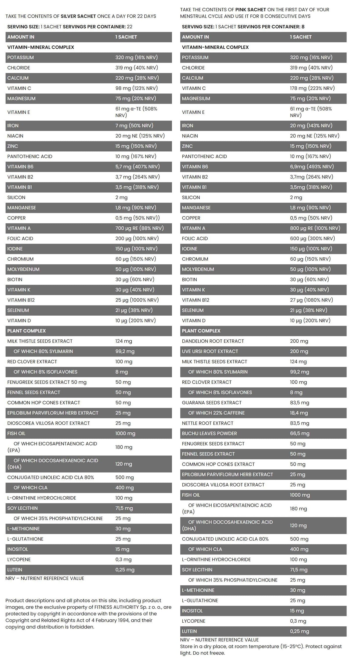 Женски фитнес Пак | Пълна мултивитаминова формула за менструални цикъла дни - 22 + 8 пакета