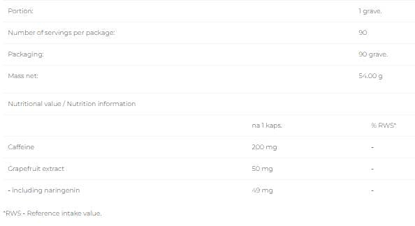 • Добавен екстракт от грейпфрут: Специалната формула с екстракт от грейпфрут засилва полезното действие на кофеина.