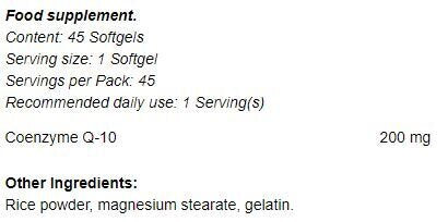 съставки: Коензим Q10, ориз на прах, магнезиев стеарат, желатин
