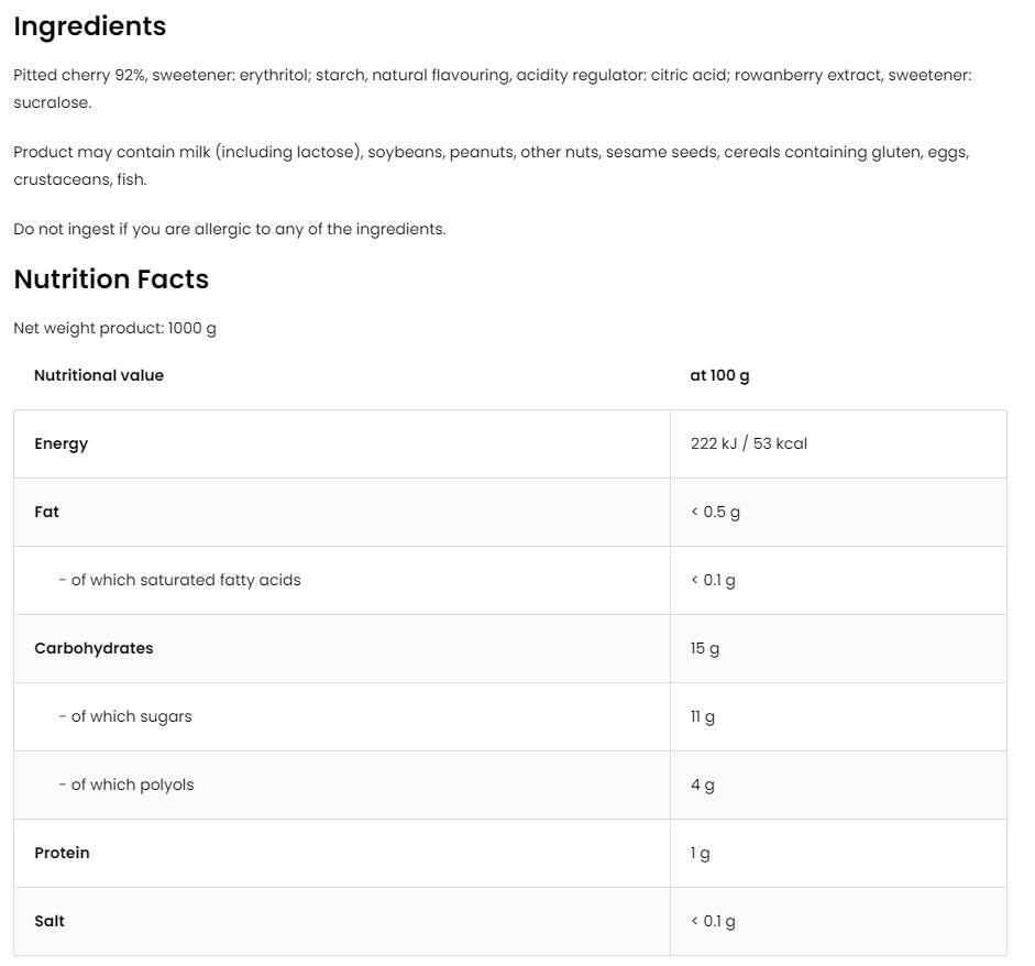 Черешово желе с 92% истински плодове и без добавена захар е уникален продукт, който предлага множество ползи за здравето. Той е източник на антиоксиданти, които помагат за защитата на клетките от увреждане, причинено от свободните радикали. Консумацията на череши се свързва с намаляване на възпалението в тялото и поддържане на сърдечно-съдовото здраве.