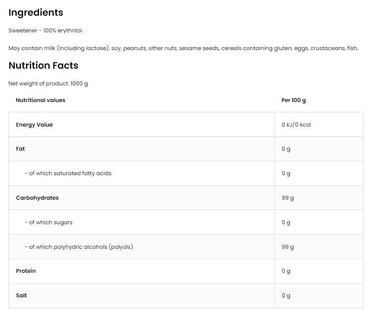 Еритритолът е лесноусвоим, подходящ за диети и хранителни режими, не повишава кръвна захар и не влияе нива на инсулин.