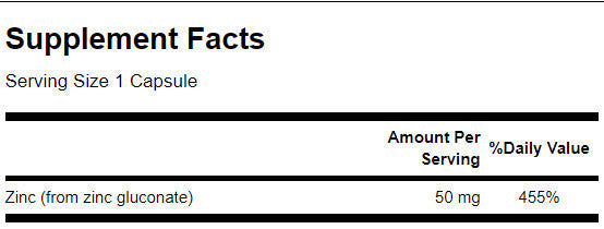 Ценна хранителна подкрепа за имунната система, простатата, здравето на очите и др. Цинкът е основен минерал и ключов елемент от основните антиоксидантни ензими на тялото. Всяка капсула с висока ефективност доставя 50 mg цинков глюконат.