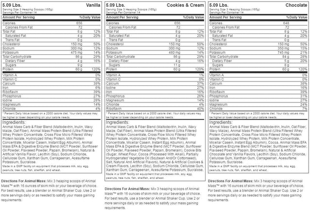 Маса на животните е уникален гейнър с изключително високи количества протеин във всяка доза - цели 60 грама. Изграден от протеинова матрица, сложни въглехидрати и здравословни мазнини, Animal Mass е най-добрият инструмент за покачване на мускулна маса. Формулата на продукта съдържа храносмилателни ензими, които увеличават способността на организма за усвояване и повишават ефективността на продукта.