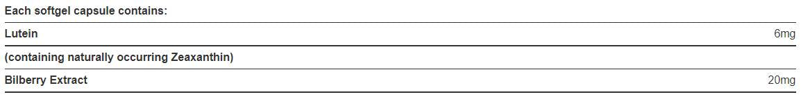 Деликатните тъкани на окото са особено уязвими към опустошителното действие на свободните радикали. Ето защо антиоксидантите играят толкова важна роля в поддържането на здравето на очите. Холанд и Барет е Стандартизиран лутеин и боровинка съчетава два от най-ефективните природни антиоксиданти в подкрепа на доброто зрение. Всеки мек гел осигурява 20 mg стандартизиран екстракт от боровинки, 6 mg лутеин.