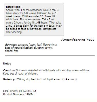 Инструкции за употреба: Разклатете добре. 2 ml 3 пъти дневно в продължение на 6-8 седмици, последвано от 2-седмична почивка. За деца под 12 години - 1 ml дневно. При интензивна употреба - 2 ml на всеки 2 часа през първите 48 часа, след това 2 ml 3 пъти дневно през следващите 8-9 дни. Може да се добавя към храна или напитки. След отваряне да се съхранява в хладилник.