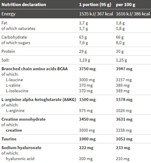 Уникална, научно разработена матрица от свободни аминокиселини, пептиди, бавно и бързо усвояеми протеини, получени от най-високо качество: хидролизат и изолат от суроватъчен протеин, мицеларен казеин и глутаминови пептиди. Тази иновативна хранителна матрица е специално подбрана, за да осигури непрекъснато снабдяване с анаболни вещества, от решаващо значение за мускулната регенерация и растеж, получени от източници с различни амино профили, абсорбция и кинетика. Този състав гарантира бързо и продължително доставяне на най-ценните хранителни вещества и анаболни вещества за мускулен растеж.